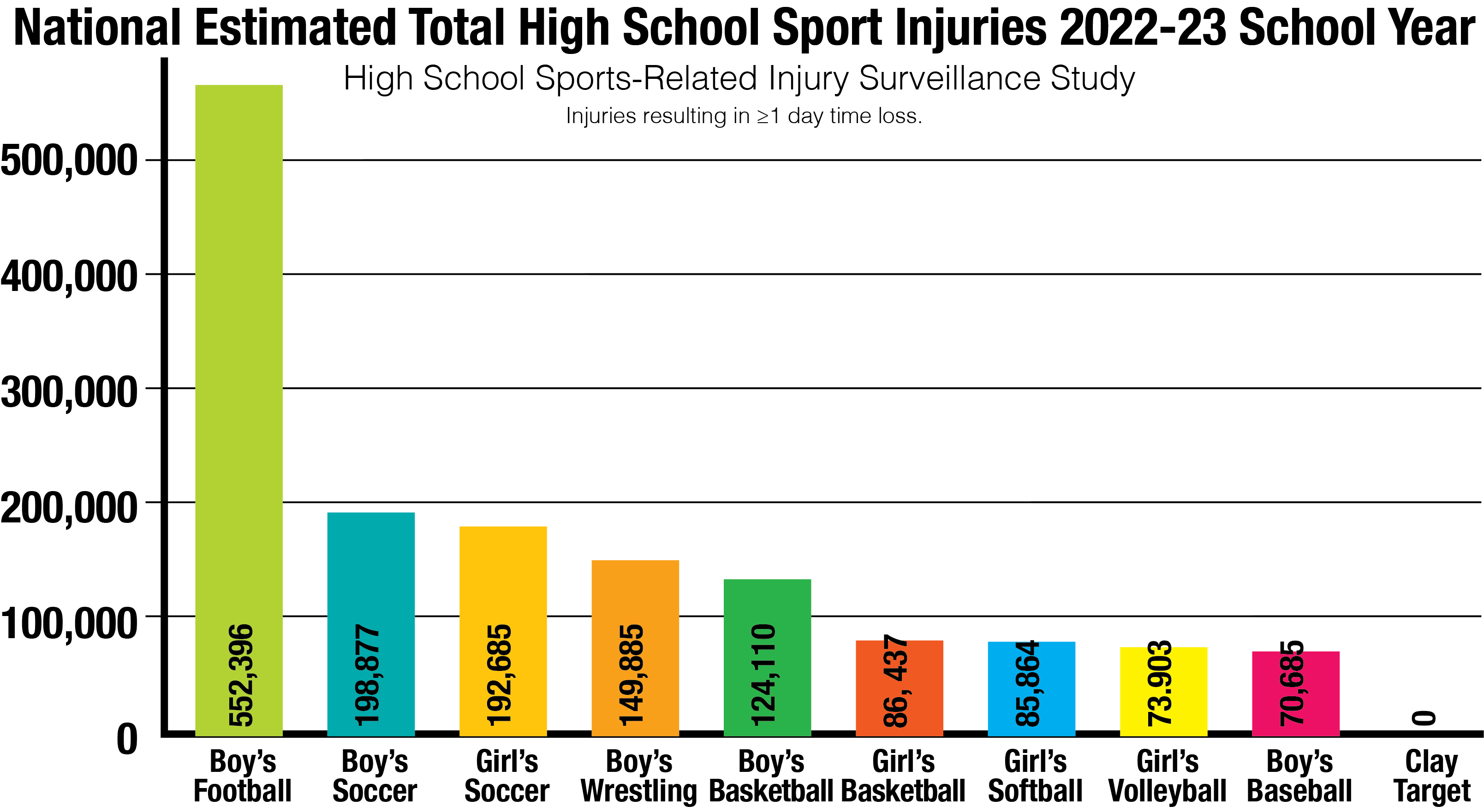 The National Federation of State High School Associations supports the High School Sports-Related Injury Surveillance Study. Since the 2005-06 school year, the National High School Sports-Related Injury Surveillance Study has monitored injuries among US high school athletes.